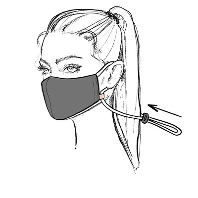 2. Reguliere die Weite individuell, so dass sie auch seitlich eng genug anliegt und Deinen Mund-Nasen Bereich ausreichend abschließt.